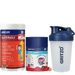 Gritzo 400g SuperMilk Growth+ with Gummies Multivitamin & Shaker for 13+ Yrs Boys