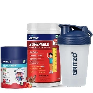 Gritzo 400g SuperMilk Height+ with Gummies Multivitamin & Shaker for 13+ Yrs Boys