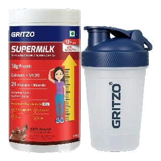 Gritzo SuperMilk Height+ for 13+ Yrs Girl 400 g Double Chocolate & Shaker Combo