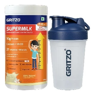 Gritzo SuperMilk Height+ for 7-12 Yrs Boy 400 g Creamy Vanilla & Shaker Combo