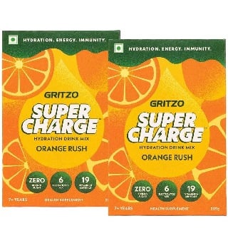 Gritzo Supercharge, Hydration Drink Mix, 15 Piece(s)/Pack Orange Rush Flavour