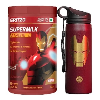 Supermilk Athlete 13+ Yrs Boy/Girl 400 g Double Chocolate and 700ml Iron Man Sipper Combo