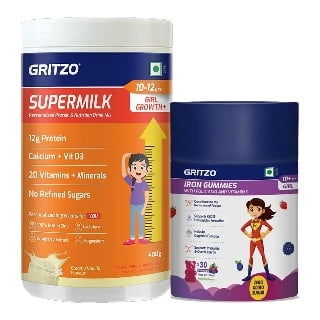 Supermilk Growth+ 400g Creamy Vanilla for 10 to 12 Yrs Girl & Iron Gummies Combo