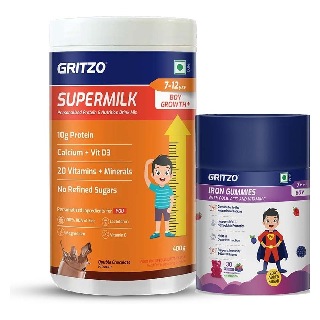 Supermilk Growth+ 400g Double Chocolate for 7 to 12 Yrs Boy & Iron Gummies Combo
