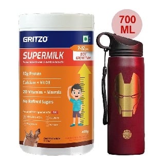 Supermilk Growth+ for Boy 7 to 12 Yrs 400g and 700ml Iron Man Sipper Combo