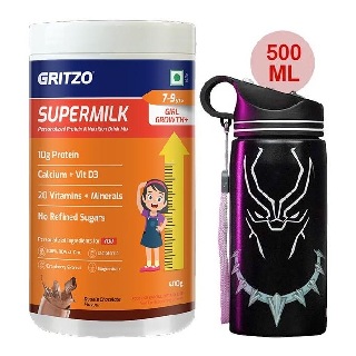Supermilk Growth+ for Girl 7 to 9 Yrs 400g and 500ml Black Panther Sipper Combo