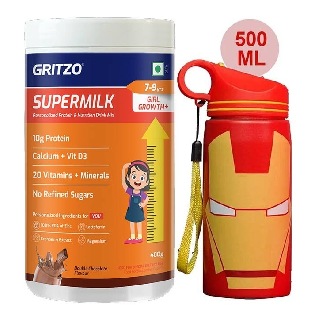 Supermilk Growth+ for Girl 7 to 9 Yrs 400g and 500ml Iron Man Sipper Combo