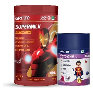 Supermilk Growth+ Ironman 400g Double Chocolate for 13+ Yrs Boy & Iron Gummies Combo