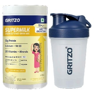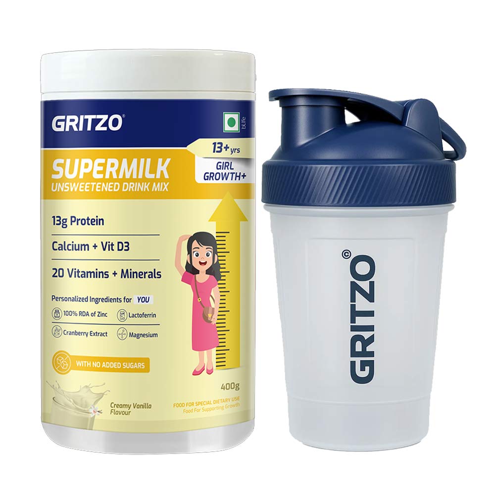 Supermilk Growth+ Unsweetened for Girl 13+ Yrs 400g Creamy Vanilla and Shaker Combo