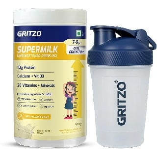 Supermilk Growth+ Unsweetened for Girl 7 to 9 Yrs 400g Creamy Vanilla and Shaker Combo