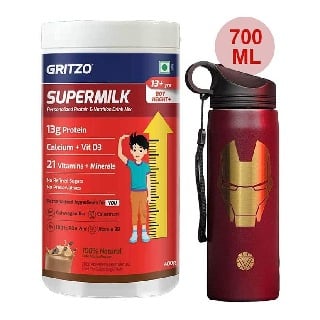 Supermilk Height+ for Boy 13+ Yrs 400g Cafe Mocha and 700ml Iron Man Sipper Combo
