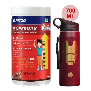 Supermilk Height+ for Boy 13+ Yrs 400g Double Chocolate and 700ml Iron Man Sipper Combo