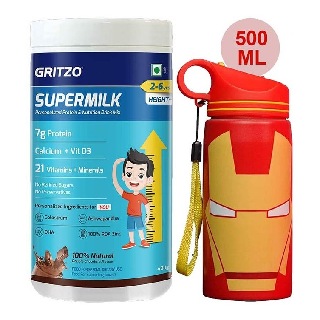 Supermilk Height+ for Boy/Girl 2 to 6 Yrs 400g and 500ml Iron Man Sipper Combo