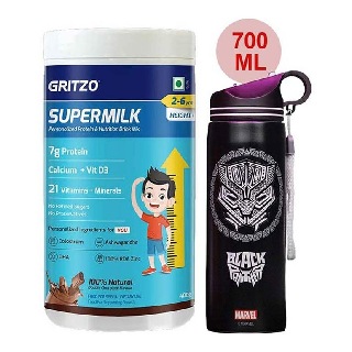 Supermilk Height+ for Boy/Girl 2 to 6 Yrs 400g and 700ml Black Panther Sipper Combo