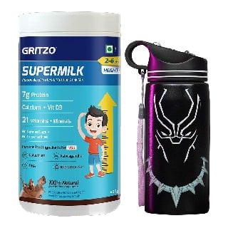 Supermilk Height+ for Boy/Girl 2 to 6 Yrs 400g and Black Panther Sipper 500ml Combo