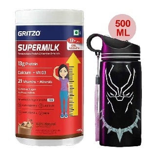 Supermilk Height+ for Girl 13+ Yrs 400g Cafe Mocha and 500ml Black Panther Sipper Combo