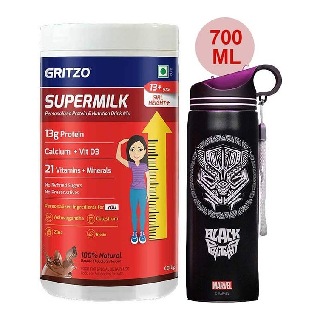 Supermilk Height+ for Girl 13+ Yrs 400g Double Chocolate and 700ml Black Panther Sipper Combo