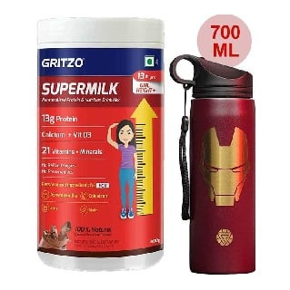 Supermilk Height+ for Girl 13+ Yrs 400g Double Chocolate and 700ml Iron Man Sipper Combo