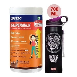 Supermilk Height+ for Girl 7 to 12 Yrs 400g and 700ml Black Panther Sipper Combo
