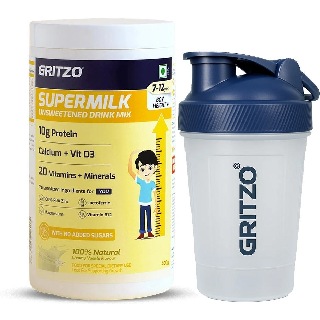 Supermilk Height+ Unsweetened for Boy 7 to 12 Yrs 400g Creamy Vanilla and Shaker Combo