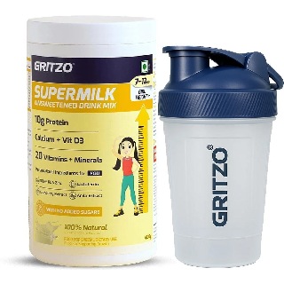 Supermilk Height+ Unsweetened for Girl 7 to 12 Yrs 400g Creamy Vanilla and Shaker Combo