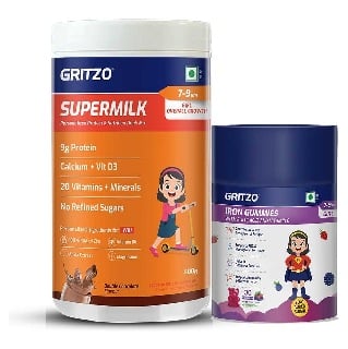 Supermilk Overall Growth 400g Double Chocolate for 7 to 9 Yrs Girl & Iron Gummies Combo