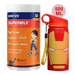 Supermilk Overall Growth for Boy 7 to 12 Yrs 400g and 500ml Iron Man Sipper Combo
