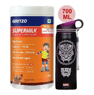 Supermilk Overall Growth for Girl 10 to 12 Yrs 400g and 700ml Black Panther Sipper Combo