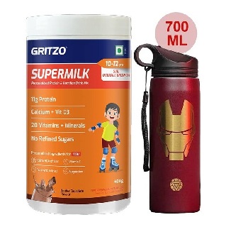 Supermilk Overall Growth for Girl 10 to 12 Yrs 400g and 700ml Iron Man Sipper Combo