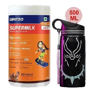 Supermilk Overall Growth for Girl 7 to 12 Yrs 400g and 500ml Black Panther Sipper Combo