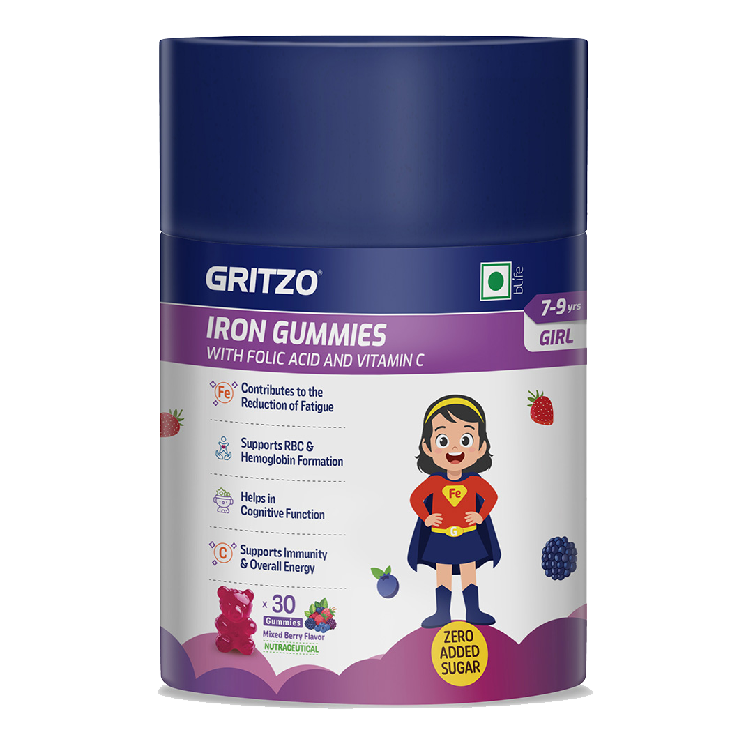 Gritzo Iron Gummies with Folic Acid & Vitamin C are specially personalised for girls aged 7–9 years.