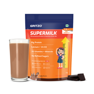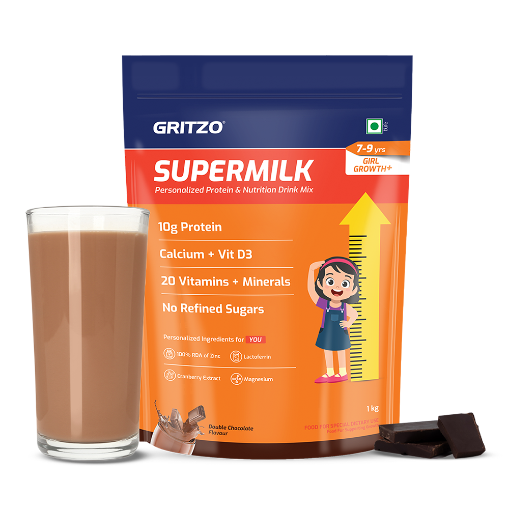 Supermilk Growth+(Formerly Height+) for Girl 7 to 9 years, 1 kg Double Chocolate 7-9 Yrs Girl Growth+(Formerly Height+) With Unrefined Sugar